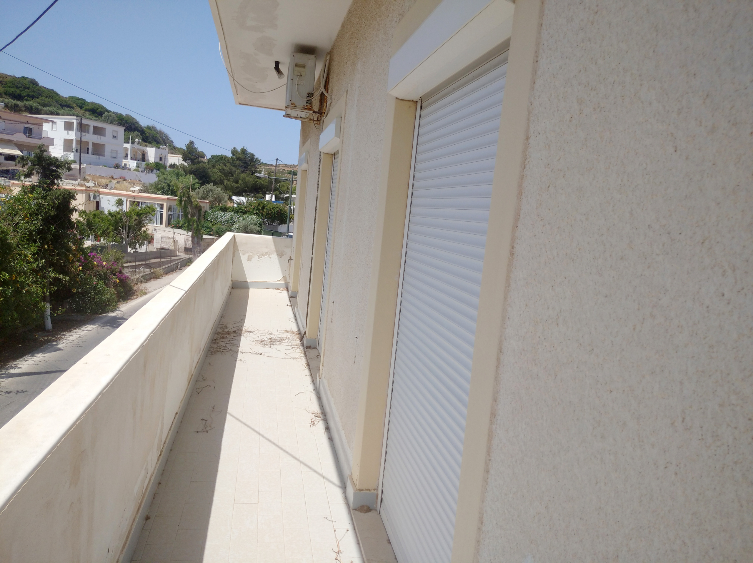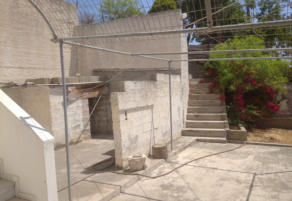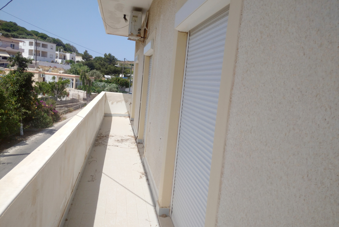 The outlet is divided into two open plan areas with two WC. While the apartment consists of three bedrooms, living room, kitchen, bathroom and one laundry room.At the plot there are also two yards. One at the main entrance and one at the back of the house, to which there is also direct access from the apartment. It’s location is ideal, as it is very close to the airport and at the same time very close to the touristic and commercial center of Alinda. It is easily accessible from a municipal road and has electricity and water supply.