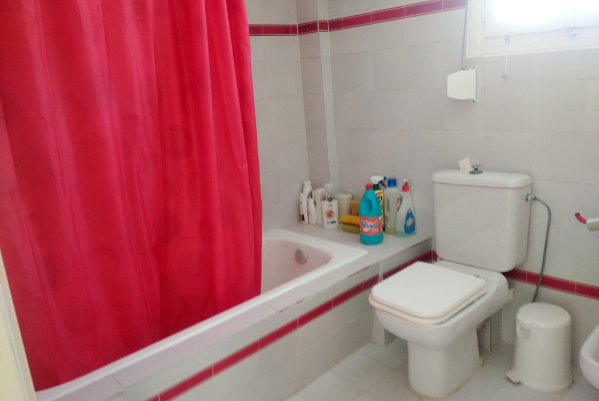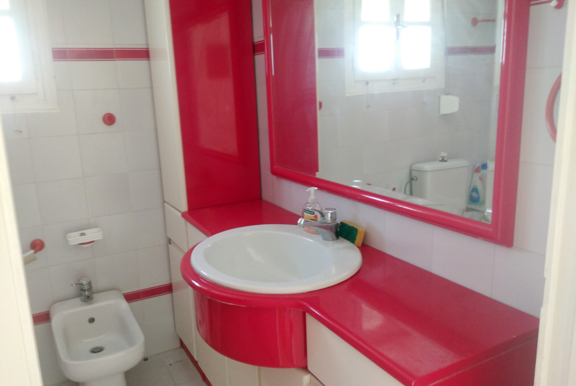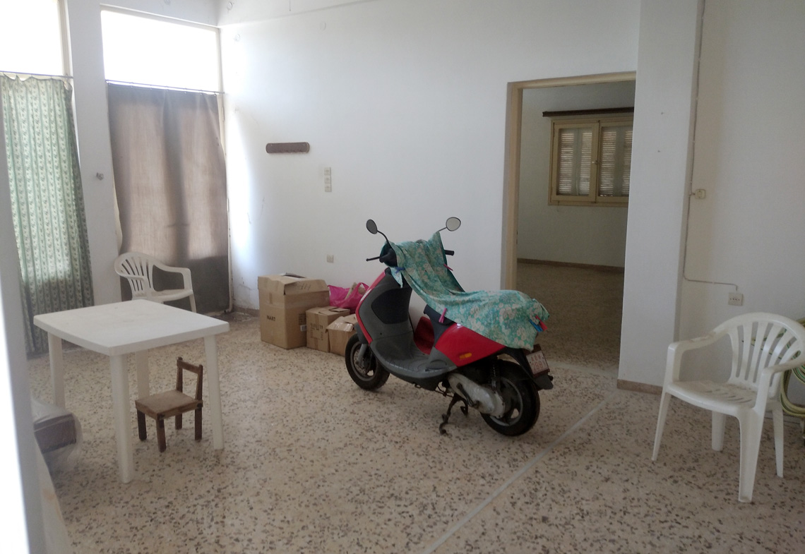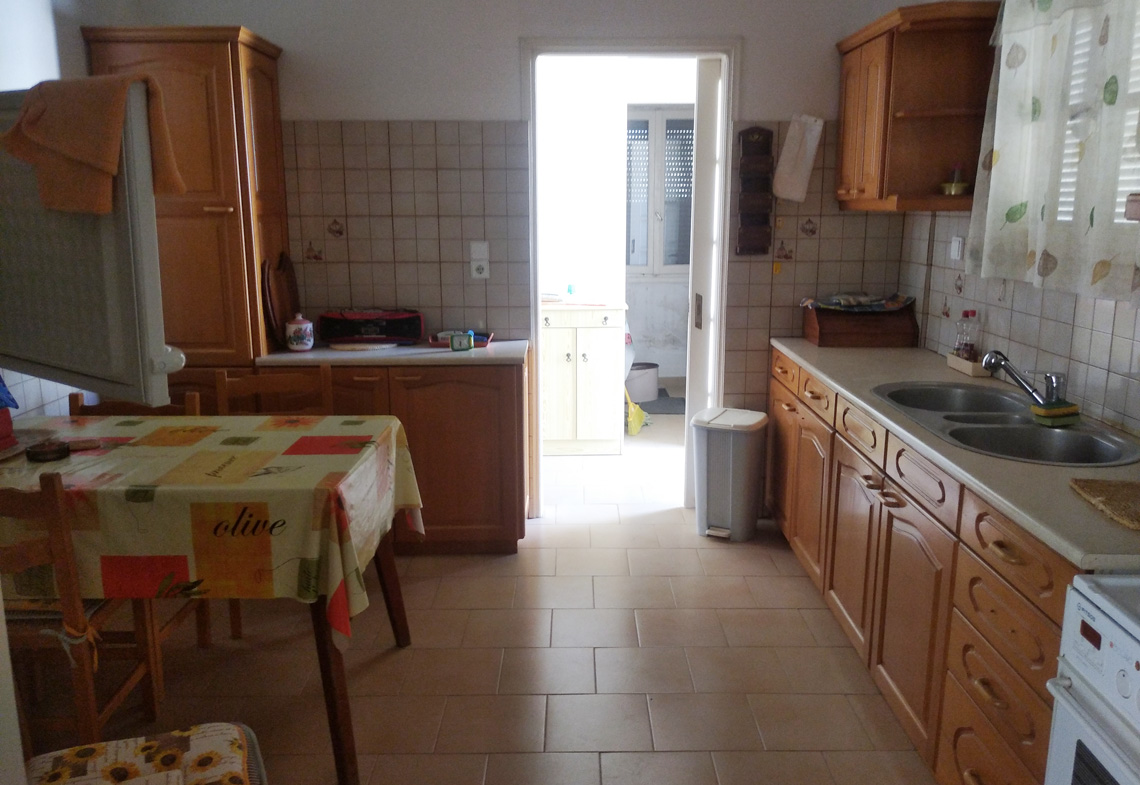 The outlet is divided into two open plan areas with two WC. While the apartment consists of three bedrooms, living room, kitchen, bathroom and one laundry room.At the plot there are also two yards. One at the main entrance and one at the back of the house, to which there is also direct access from the apartment. It’s location is ideal, as it is very close to the airport and at the same time very close to the touristic and commercial center of Alinda. It is easily accessible from a municipal road and has electricity and water supply.